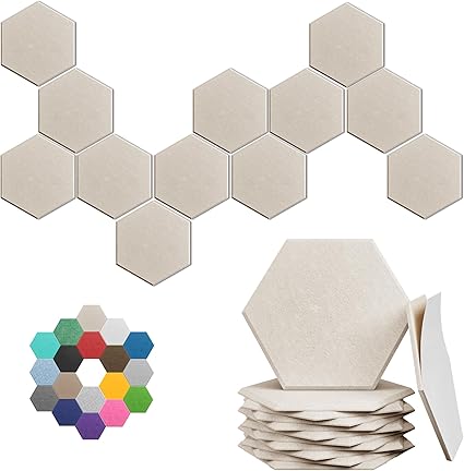 Hexagonal Acoustic Panels - 12 Pack, High-Density Sound Absorbing Panels (12" x 10" x 0.4")